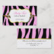 Cartão de visita animal elegante do impressão, com um impressão colorido preto e cor-de-rosa da zebra como um fundo, na parte dianteira e na parte traseira do cartão. Uma listra goldtone decorativa funciona através do meio, na parte dianteira e na parte traseira. Um ouro que olha a área de texto moldada tem gráficos bonito das folhas do ouro, de cada lado, e do texto customizável preto pronto para personalizar para seu negócio.