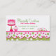 Cartão de visita cor-de-rosa e verde bonito da