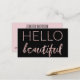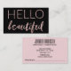 Este cartão de visita tem um teste padrão preto e cor-de-rosa moderno que caracteriza acentos cor-de-rosa do ouro na parte dianteira e nas máscaras de para corar rosa na parte traseira. Isto é inteiramente customizável para toda a profissão que você desejar! Trabalha o excelente para um cabeleireiro, um cosmetologist, um planejador wedding, ou um qualquer um que ame um cartão de visita glamoroso. A parte dianteira tem a frase "olá! bonita", e a parte traseira tem um ponto da nomeação!