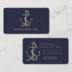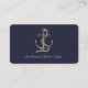Envoltórios brancos da corda em torno de uma âncora de vista realística neste cartão de visita dos azuis marinhos. O texto é customizável.
