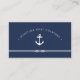 O marinho de Vintage e o design náutico branco apresentam uma ilustração âncora e um detalhamento de corda de knot, com seu nome ou nome comercial na frente. Personalize o lado inverso com as informações de contato no marinho borrado em branco. Uma escolha perfeita para as cartas de pesca, as compradas de isco e de combate, os retalhistas de equipamento de pesca, os capitães de barcos, os guias de pesca ou qualquer atividade marítima.