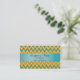 Um modelo de cartão de negócios divertido e engraçado, mas chique, com estilo tribal ikat zigzag design frente e verso em cores brilhantes de azul-pavão, laranja-tangerina, amarelo-sol e verde-oliva com sotaques azuis-pavão - calendário de todo o ano atrás. Simples com nome de empresa, telefone e site - Seu nome no verso com o calendário - TODAS as áreas de texto que você pode mudar para o que quiser - Nome, endereço e e-mail da empresa, talvez? Pronto para ser personalizado com seus detalhes personalizados adequados para vários tipos de negócios.