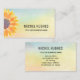 Este cartão de visita floral é decorado com um girassol de cor amarela num fundo colorido. Facilmente personalizável com seus detalhes. Use a Ferramenta Design para alterar o tamanho, o estilo ou a cor do texto. Porque nós criamos a nossa trabalho de arte, você não encontrará esta imagem exata de outros designers. Original Watercolor © Michele Davies.