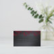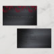 Cartão de visita elegante, mas discreto - fundo metálico escovado escuro de ambos os lados - a frente tem uma ornamentado borda vermelha profunda no topo - o texto aparece quase gravado - NOTA: Não há ouro real, diamantes, brilho, gemas, prata ou metal nesta placa - nem gravura - ele é desenhado artificialmente para aparecer assim -