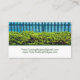 Um cartão de visita surpreendente com cobertura verde contra uma cerca azul. Este cartão de excelente funcionaria bem para um negócio de limpeza e corte de sebes, uma empresa de manutenção de jardins ou uma empresa de jardinagem de paisagens. Fácil de personalizar com as informações de sua própria empresa.
