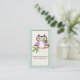 Coruja de primavera bonitinha num galho com cartões de visitas de xadrez verde-hortelã, apresentando uma coruja de primavera bonitinha em roxo e castanho escuro segurando uma flor em seu bico (conta) em um galho com folhas verdes na borda da xadrez verde-menta. Uma design decorativa, feminina, adorável para amantes de corujas. Trabalho de arte por Trina Clark.