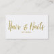 Cartões de visitas elegantes e bonitos salões de beleza com um luxuoso falso design de tipografia de brilho dourado que diz Cabelo e Unhas sobre fundo branco. Altere a cor de fundo e a cor do texto no verso para uma aparência personalizada. Projetado com técnicos de unhas, cosmetologistas, salões de beleza e cabeleireiros em mente.
