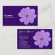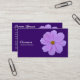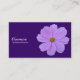 Um cartão de visita com um motivo de foto do Cosmos roxo. Nome comercial etc. na frente com outros detalhes no verso com o mesmo motivo e estilo.