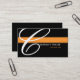 Um fundo preto com uma listra alaranjada. Substitua o grande "C" com a primeira letra de seu nome de empresa para um olhar feito sob encomenda. Toda sua informações de contacto é na parte de trás do cartão. A pia batismal e o tamanho e a cor de pia batismal podem ser mudados.