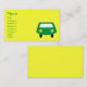 Cartões de visitas amarelos brilhantes e alegres com um carro verde de sorriso bonito dos desenhos animados. Ideal para o primeiro cartão de visita de uma criança ou para um mecânico/loja de reparação de automóveis. A cor do texto, da pia batismal e do fundo é inteiramente customizável serir suas necessidades clicando no "personaliza-o" o botão - cargas das pias batismais & das cores para escolher de. O design pode facilmente ser movido, ou resized. Se você precisa algum auxílio em personalizar seu produto me contacta por favor através de minha loja e eu serei mais do que feliz ajudar.