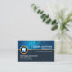 No verso, num cobrir azul escuro, o logotipo está no topo, seguido do seu nome prestigiado, dos seus contatos e de uma opção de slogan para divulgar os seus serviços.