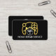 Um cobrir preto apresenta uma paisagem dourada com um logotipo falso de martelo prateado que você pode usar. Perto da base está o nome comercial "SERVIÇO DE REPARO DOMÉSTICO" que você pode alterar. No verso, no topo está o logotipo prateado da "carrinha de mão" que você pode usar. Isso é seguido pelo nome da sua empresa, seus detalhes de contato e uma legenda de slogan que você pode alterar. Um cartão profissional para que o trabalhador e os empreiteiros usem. #handyman #construcder #contratante #remodelador #empreiteiro #construtor #homerepair #telhado #handymantools #homerepaircontratante