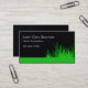 Esta design foi feita para profissionais de saúde do gramado, com uma imagem de pedúnculos de grama longos de um lado, e uma área verde mais suave à esquerda, com texto legal para seus detalhes comerciais. Há outra área de texto na parte traseira para obter mais informações ou pode ser excluída. Esta versão com texto branco é melhor no cartão preto.