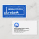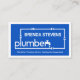 A blue cover is encapsulated by a white rectangular frame. It features a creative "plumber" water pipe frame design with your prestigious name at the top. Near the base of the card is a slogan caption which you can change.