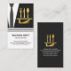 Cobrir apresenta um traje de mordomo de garçom de cinza escura com uma camada de avental branca subjacente. Na parte superior do cartão está uma placa de serviço de ouro com talheres em cima. Na direção da camada de avental branca está o seu nome prestigioso, o título do cargo e os detalhes de contato perto da base. No verso, em uma cobrir escura de cinzas, no topo está um logotipo dourado "prato de talheres" que você pode usar. Seguem-se os dados de contato e duas opções de slogan para que você divulgue seus serviços. Um cartão de excelente para temas de comidas e restaurantes. #restaurante #comida #restauração #restauração #cozinhar #cozinheira #comida #serviço #garçom #restaurante #garçom #mordomo #serviço de topo #zazzlemade