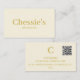 Um cartão de visita profissional minimalista creme com texto dourado. O cartão tem o nome comercial na frente, com o reverso a ter as informações comerciais. Substitua a imagem QR pela sua própria imagem QR. As costas também tinham uma inicial elegante representando o nome da sua empresa ou o seu nome. Também pode ser removido se quiser. Elegante e simples. Um cartão profissional adequado para as empresas termais ou cosméticas profissionais, bem como um advogado. De um alcance de Designs Finos de Chessie. Visualize a coleção através do link mais abaixo na página do produto.