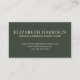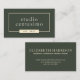 Um cartão de visita profissional moderno e minimalista. A na moda e o simples design apresentam um cartão verde-oliva escuro com sotaques geométricos creme e tipografia. Personalize a frente com seu nome comercial e o ano estabelecido enquanto a parte traseira inclui seu nome, título, telefone, email e endereço da Web.