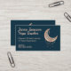 Um design de lua rosa de ouro maravilhoso em um fundo azul escuro. Este elegante cartão de visita seria perfeito para um negócio de cura como ioga, massagem ou treinador espiritual. Personalize com suas informações comerciais.