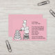 Cartão de visita de Bolo de Casamento Divertido. Personalize com os detalhes de sua empresa. Ilustração mostra um criador de bolo enrolando uma pá decorando um bolo de casamento gigante.