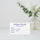 Cartão de visita de letras azuis simples para as mães se contactarem, para que as suas crianças se possam encontrar