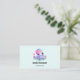 Cartões de visitas com uma imagem de um polvo giro e giro com uma flor na cabeça. Grandes olhos brilhantes e um rosto amigável.