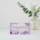 Este cartão de visita apresenta um tema de cura e meditação luxuosa. Os cristais de ametista de estilo aquoso em vários tons de roxo são representados na parte inferior e no canto superior direito. As ametistas são acentuadas com uma tinta colorida ametista roxa correspondente e speck de brilho. É perfeito para um negócio de cicatrização de cristais, limpeza de aura, spa, ou outro serviço de relaxamento e limpeza.