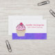 Cartões de visitas profissionais com uma ilustração de um cupcake delicioso. Glacé rosa e garoa de chocolate. Um cupcake amarelo e uma framboesa no topo.