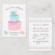 Um cartão de visita elegante e colorido, perfeito para uma padaria, uma restauração, ou um indivíduo vendendo bolos, cupcakes, doces e outros doces caseiros. A frente do cartão lê seu nome em texto curvo, seguido de doces caseiros. Um bolo elegante, azul e rosa, com duas pontas, é decorado com bolachas e biscoitos, rodeado por um cupcake azul e cor-de-rosa e caindo borrachas multicoloridas. Personalize adicionando seus negócios e detalhes de contato à parte traseira.
