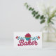 Pretty business card for a baker, bakery, or cupcake baking biz featuring faux embroidery cupcake and cute flourishes and hearts, personalized with your text on the back.