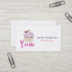 Cartões de visitas com o texto Yum! Projetado com uma ilustração de um cupcake alegre com espirais cor-de-rosa e uma baga com folhas aninhadas no glacé.