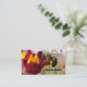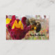 Este cartão de visita caracteriza uma fotografia de uma abelha do mel que recolhe o néctar e o pólen de uma flor cor-de-rosa e amarela.