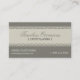 Um olhar no painel afiado laçado nnestes cartão e ele apenas indica a elegância. Este é um cartão versátil que possa trabalhar para planejadores de evento, consultantes nupciais, costureiras ou todo o negócio com um dom sofisticado. Um painel colorido creme afiado com tatting destaca o nome da empresa contra o taupe escuro. O painel é tratado a maneira oposta no reverso de destacar o resto da informação do negócio. Disponível em cores alternativas com produtos de harmonização.