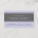 Um olhar no painel afiado laçado nnestes cartão e ele apenas indica a elegância. Este é um cartão versátil que possa trabalhar para planejadores de evento, consultantes nupciais, costureiras ou todo o negócio com um dom sofisticado. Um painel pálido do lilac afiado com tatting destaca o nome da empresa contra cinzas de carvão vegetal. O painel é tratado a maneira oposta no reverso de destacar o resto da informação do negócio. Disponível em cores alternativas com produtos de harmonização.