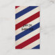 Cartão de visita da barbearia com o gráfico do moustache e do laço. O cartão tem-lhe um estilo vermelho, branco, e azul tradicional do barbeiro. Inteiramente customizável, incorpore seu informações da empresa, logotipo, ou fundo. Aperfeiçoe para um barbeiro, um barbeiro, ou um estilista.