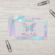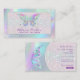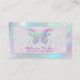 Borboleta arco-íris pastel atordoante com brilho de marfim simulado e fundo holográfico. Perfeito para terapeutas de beleza, cabeleireiros, planejadores de eventos, designers de interiores.... Clique em personalizar para personalizar com seu próprio nome e detalhes comerciais. Se você quiser editar/excluir os ícones sociais, clique em editar usando a ferramenta design para personalizar ainda mais.