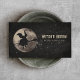Ilustração de uma bruxa cavalgando uma vassoura e um morcego vampiro em frente à lua de ouro