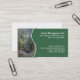 Um modelo de cartão de negócios para as empresas da silvicultura e de madeira com uma foto de uma ceifeira azul que abatem umas coníferas. Na parte dianteira são os detalhes do nome da empresa, de endereço e de contato em um painel verde escuro separado da fotografia por uma linha ondulada branca. No reverso são o espaço para o nome e a posição de um empregado, e toda a outra informação. Isto está no estoque do cartão colorido do branco, com uma cor customizável do fundo no reverso.