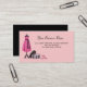 Cartão com ilustração da forma de um vestido de cocktail em um manequim do formulário do vestido da costureira e em uns calçados de harmonização do salto alto. Este é um cartão frente e verso fabuloso.