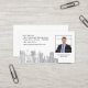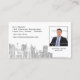 Adicione sua própria foto a este cartão de visita com skyline cinzenta da cidade no fundo branco. Aperfeiçoe para arquitetos ou negócio dos bens imobiliários.