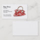 design de cartão de visita profissional com um saco de couro da mulher vermelha