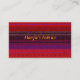 Este cartão de visita anuncia uma loja do tecido que se especialize nos tecidos para a forma e a decoração home, máquinas de costura, noções e acessórios. Características deste design coloridas das belas artes uma imagem de um teste padrão abstrato colorido de bandas horizontais tecidas. As cores brilhantes de vermelho, de roxo, o azul e o preto parecem incandescer. O verso tem todo o texto pertinente que pode ser personalizado para serir suas necessidades.