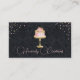 Cartão de visita de padaria elegante feito em um fundo negro-a-preto, com gráficos deliciosos de um bolo rosa, na frente. Personalize o texto cor-de-rosa pálido, na parte frontal e traseira do cartão, para atender às necessidades de sua empresa. Excelente para os padeiros domésticos também.
