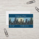 Personalize este modelo de cartão de negócios. Silhueta da skyline do arranha-céus da cidade com um fundo da cerceta e um texto branco.