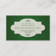 Uma cor damasco verde de Kelly compo o fundo neste cartão de visita quando a informação do negócio se sentar em um quadro ornamentado. Este é um cartão verdadeiramente versátil que possa ser usado por varejistas, por atacadistas, por consultantes, por desenhistas, por planejadores de evento ou por aqueles no campo de matéria têxtil. Disponível em cores alternativas com produtos de harmonização.