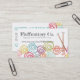 Bolas coloridas simples do estilo do doodle ou do scribble do fio com as agulhas de confecção de malhas no cartão de visita deste knitter para seus artesanatos feitos malha handmade do fio
