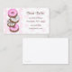 A pilha de rosquinhas com polvilha, chocolate e glacé cor-de-rosa no fundo cor-de-rosa e branco das bolinhas. Grande cartão de visita para padarias, lojas da rosquinha, padeiros, ou cafetarias.
