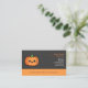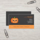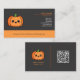 Uma cinza escura e cartão de visita cor de laranja com uma abóbora fofa no estilo Kawaii, código QR e slogan! Para negócios engraçados, fazendas, vendedores de legumes, decoração, venda de fantasias, jardineiros, etc.