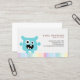 Esta é uma cartão de visita de babá que apresenta uma engraçada e engraçada alienígena de monstro azul no lado esquerdo da placa. Há uma borda estriada pastel na parte inferior do cartão, com seu nome, título e detalhes básicos de contato no lado direito do cartão.
