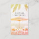 Este elegante cartão de visita apresenta duas cadeiras de praia com um guarda-chuva rosa-coral e coquetéis sob folhas de palmeiras na praia cor-de-rosa em frente ao mar de turquesa leve. Personalize-o para as suas necessidades. Perfeito para aluguel de férias, agências de viagem, propriedades de férias e qualquer profissional de negócios da ilha. Você pode encontrar produtos correspondentes na minha loja.