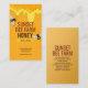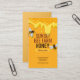 cartão de visita de colmeia com mel pingando do pente e um par de abelhas voando sobre um fundo laranja de tangerina escuro. Use caracteres personalizados para o seu nome de marca - usando até cinco linhas de texto, incluindo linhas de vazio, para enviar palavras para o topo. Adicione o nome do apicultor ou do apiário profissional e as informações de contato, com a descrição opcional da empresa ou a lista de produtos no verso.
